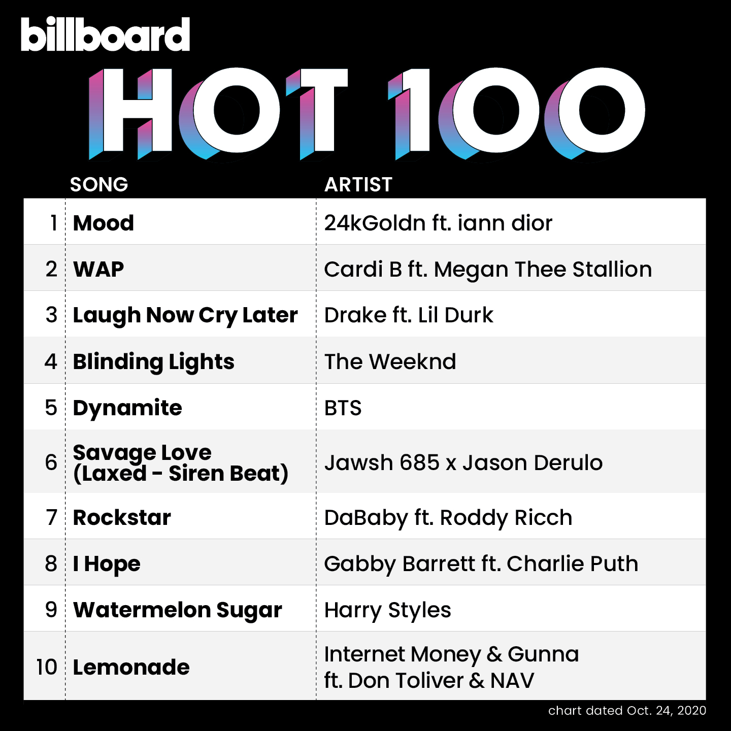 Billboard Charts On Twitter The Hot100 Top 10 Chart Dated Oct 24 2020 Https T Co Epfdmnsp3f