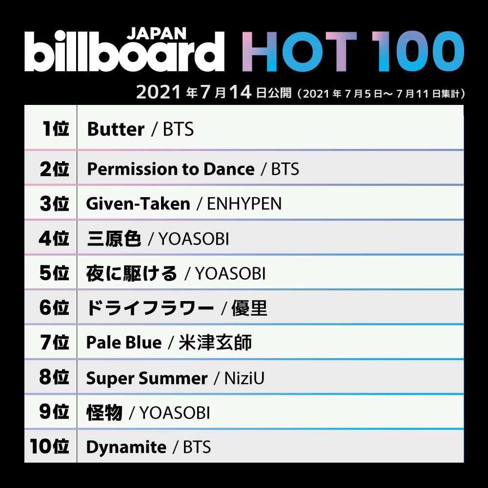 Bts Charts Translations On Twitter Bts Twt Have 3 Songs Inside Top 10 Of Billboard Japan Hot 100 This Week 1 Butter 4th Week At 1 2 New Permission To